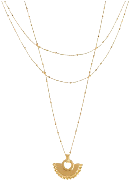 This necklace set includes layered necklaces that add a touch of glamour without being over the top. The fan design is unique and eye-catching, making it a standout accessory.