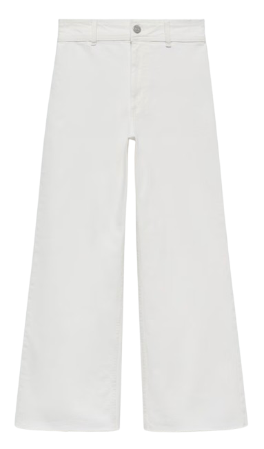 These cropped jeans offer a relaxed fit with a high-rise waist that cinches you in at the right places. The culotte style is very flattering, and the white color keeps the outfit fresh and sophisticated.