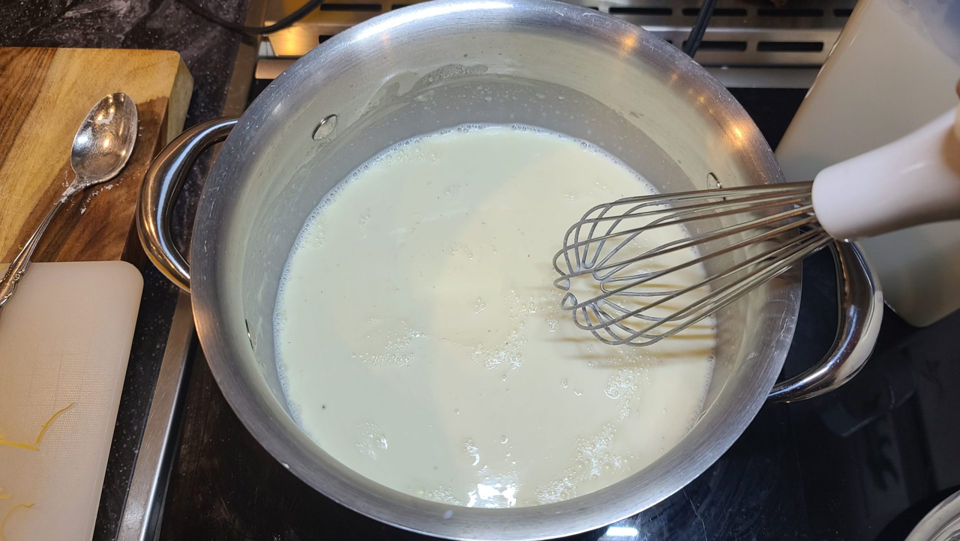 4. Gradually whisk in milk until all clumps are gone, and the mixture is smooth and incorporated.