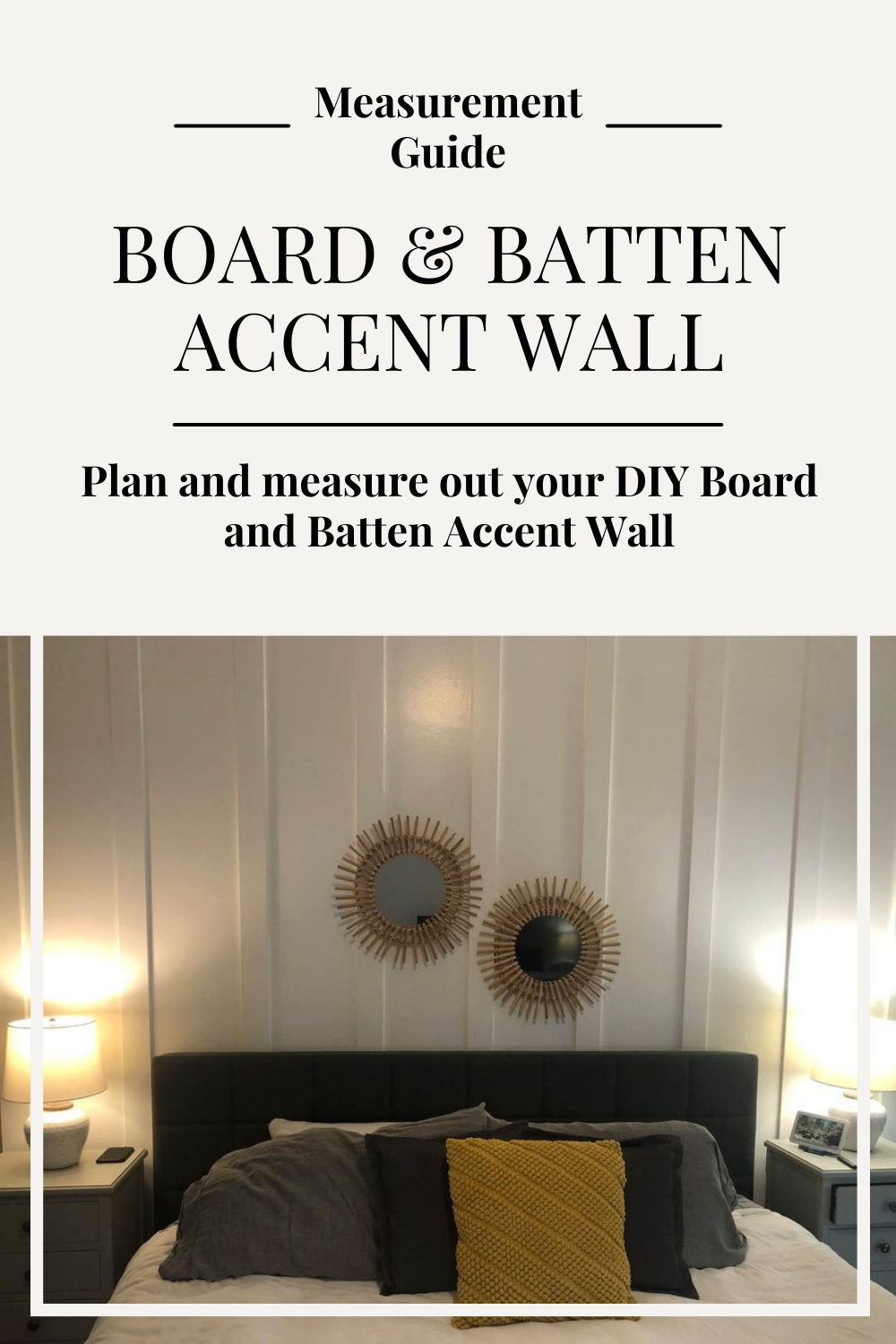 Decide on the number of vertical boards you want on your wall. Typically, board and batten walls have an odd number of vertical boards for a balanced look. You'll need to envision the boards and decide what look you're going for. Based on my wall size, I opted for boards.