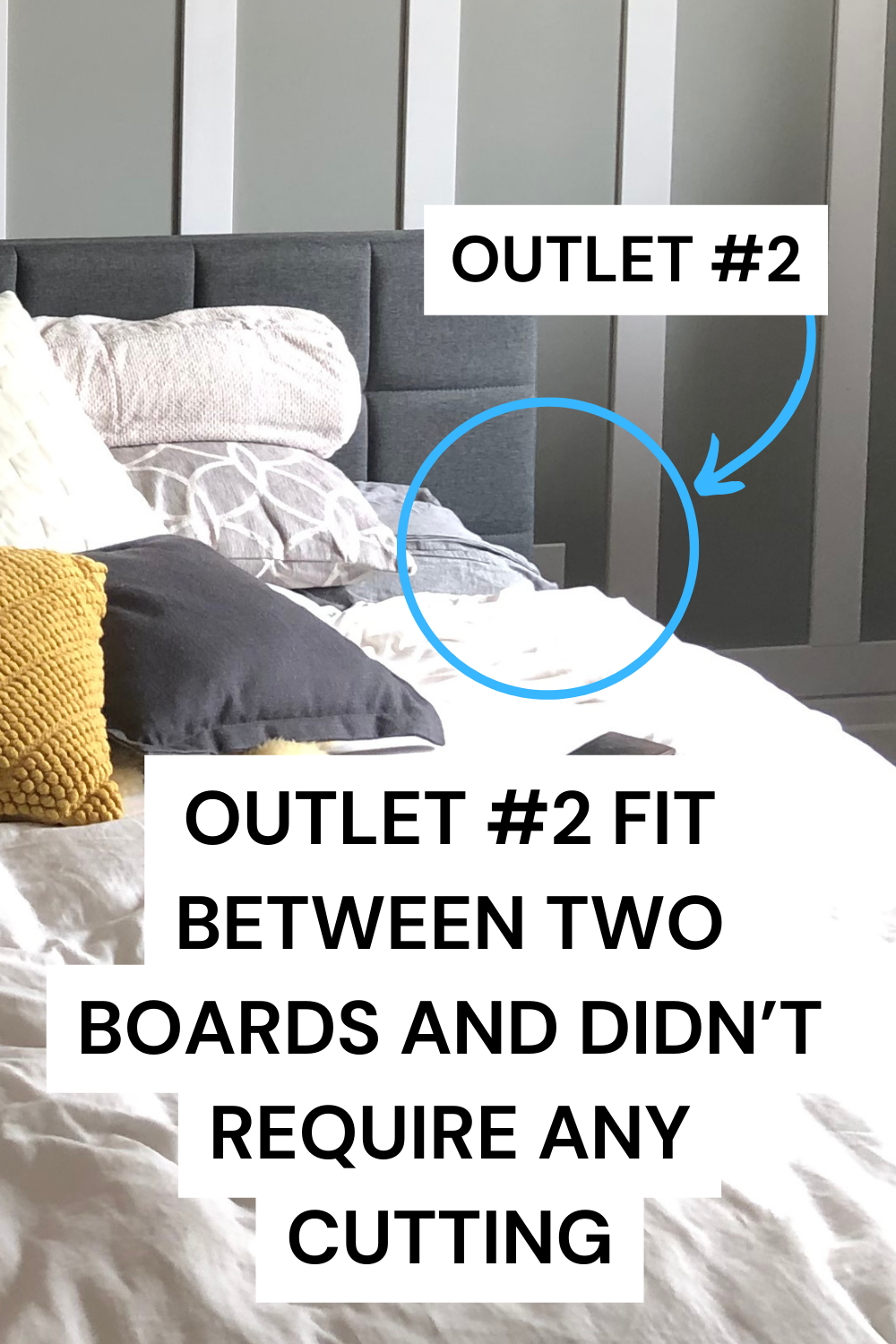 Measure and mark the positions of outlets and switches, and cut openings in the boards accordingly. Be precise to ensure a neat appearance. It's also a good idea to take note if you have any outlets, etc, before deciding on board spacing. It might be easier to choose a different spacing to avoid any outlets (or fewer outlets!) ahead of time.