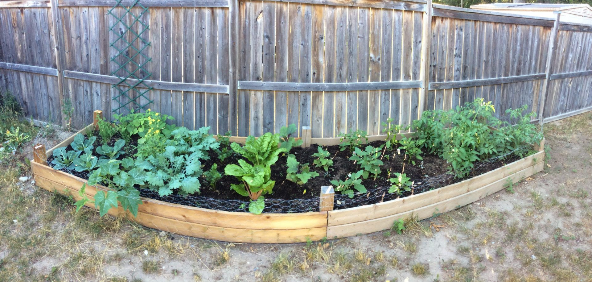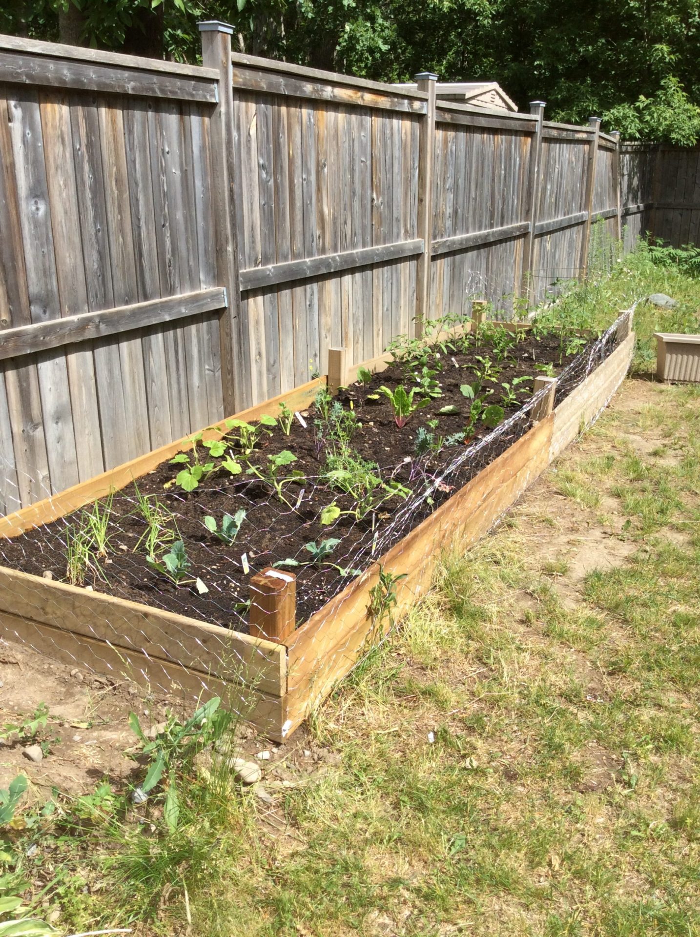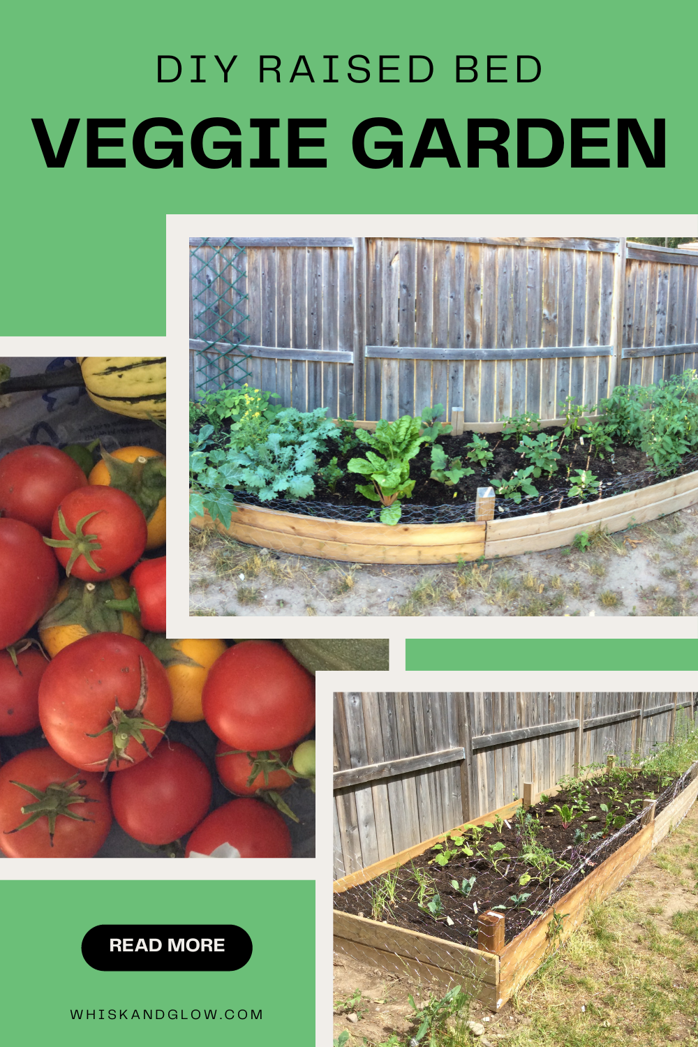 You’ll see from the pictures that I built my raised bed veggie garden in sections. I built one section in fall, then the next section in spring. That is why the wood for each section looks different. (I was a new mom and my time was limited!)